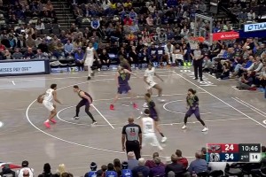 [克莱底角三分]这是咋了?克莱底角三分稳稳命中 随后换下场返回更衣室