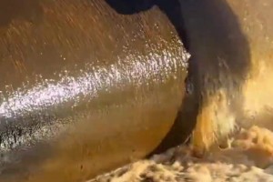 只见工人用力一拍,没想到就这样出水了