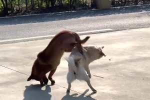 两只狗狗打架,长得高的优势不就用上了