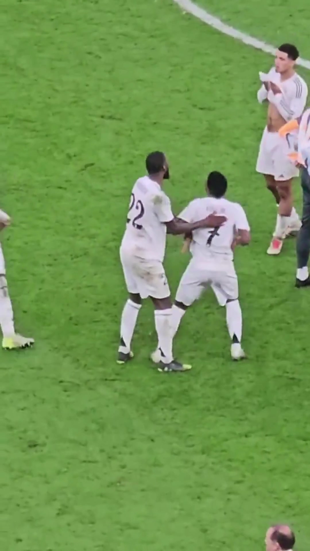 >这氛围😍颁奖典礼时,吕迪格与维尼修斯、卡马文加和贝林摔跤